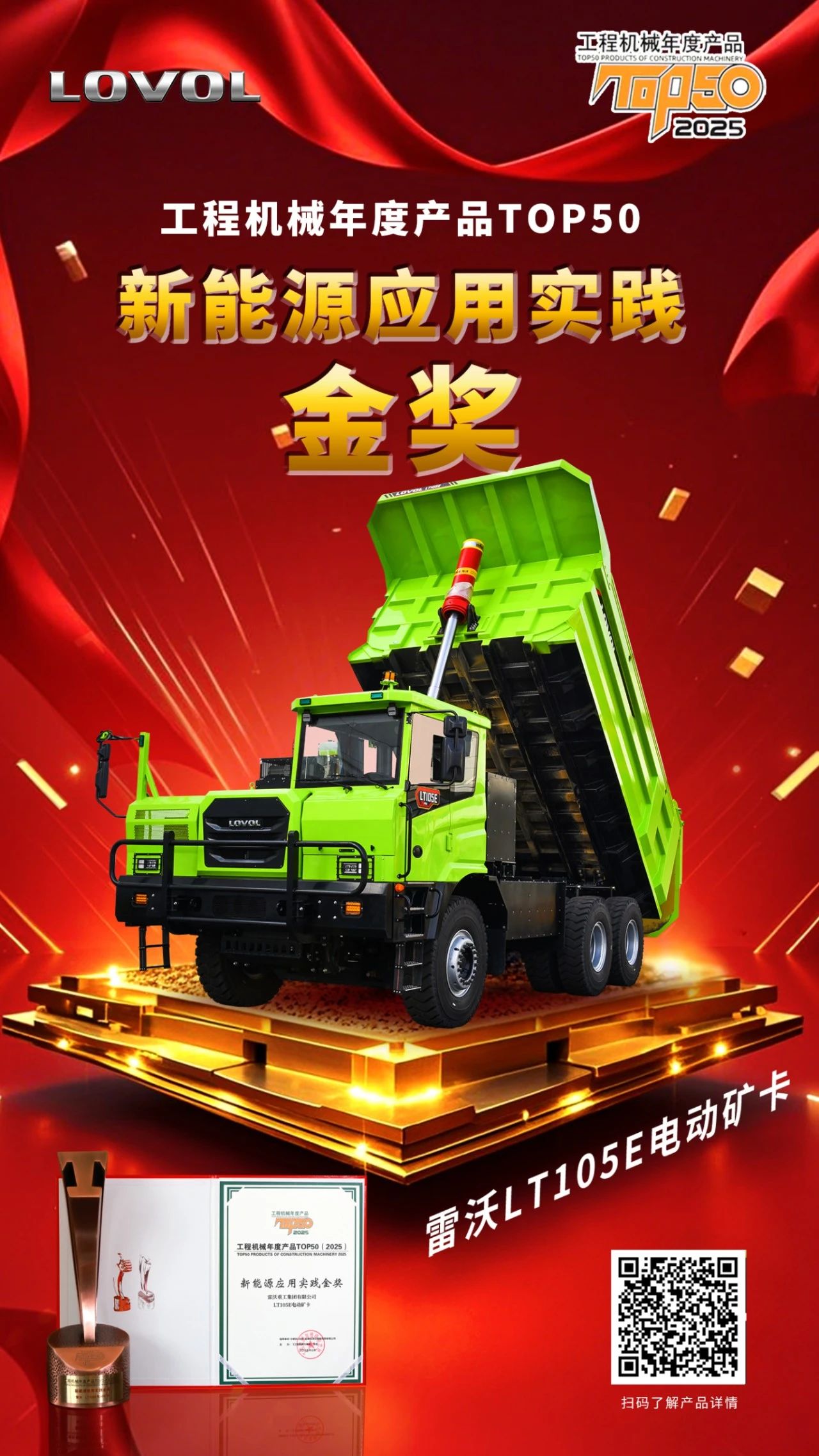“2025工程機械年度產(chǎn)品TOP50榜單發(fā)布”近日在北京舉行。雷沃重工FR350F挖掘機、FR850F挖掘機、FL960-E電動裝載機和LT105E電動礦卡,四款產(chǎn)品在激烈競爭中脫穎而出.