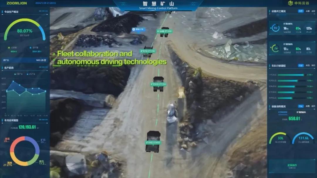 以智慧礦山整體解決方案為例。中聯(lián)重科以“礦卡無人駕駛和遠(yuǎn)程遙控”為核心,基于中聯(lián)重科4.0裝備及中科云谷統(tǒng)一技術(shù)底座,實(shí)現(xiàn)挖卡協(xié)同、無人駕駛、數(shù)字化管理、自動化安全監(jiān)測等軟硬一體的成套解決方案,打通采、挖、運(yùn)、卸的全流程無人化作業(yè),從源頭上解決礦山安全問題,為數(shù)字化礦山高質(zhì)量生產(chǎn)運(yùn)營提供全方位的支撐與服務(wù)。