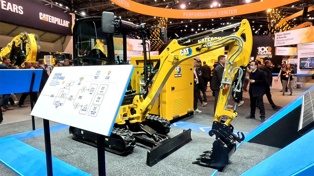本次展會(huì),卡特彼勒展出了其在電池及電動(dòng)產(chǎn)品線的最新力作——2噸級(jí)Cat 301.9電動(dòng)微型挖掘機(jī)與2噸級(jí)Cat 906緊湊型電動(dòng)輪式裝載機(jī)。