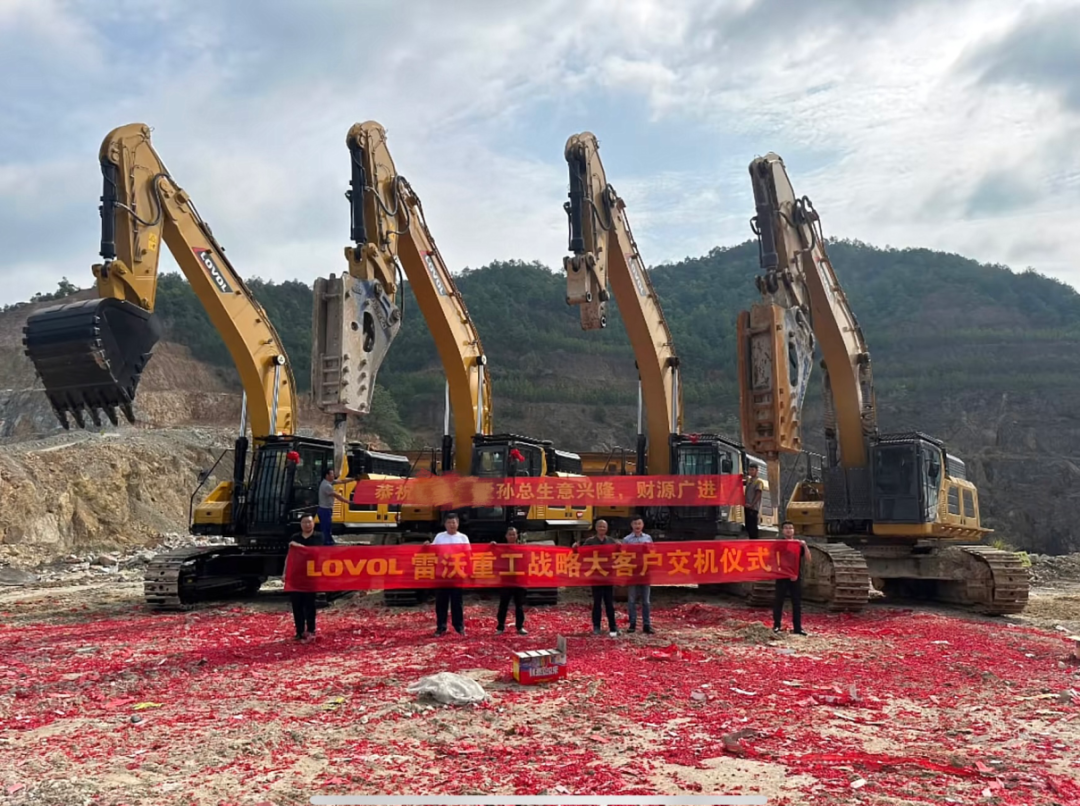 在江西,雷沃FR560F挖掘機批量交付。此次交付的雷沃FR560F挖掘機,全新雷沃重工“液壓動力總成”產(chǎn)品,其搭載“濰柴發(fā)動機+濰柴主泵+濰柴主閥”,動力強,油耗低,配備鏟斗、破碎錘兩種屬具,左挖掘、右破碎,為孫總礦山高效開采保駕護航。