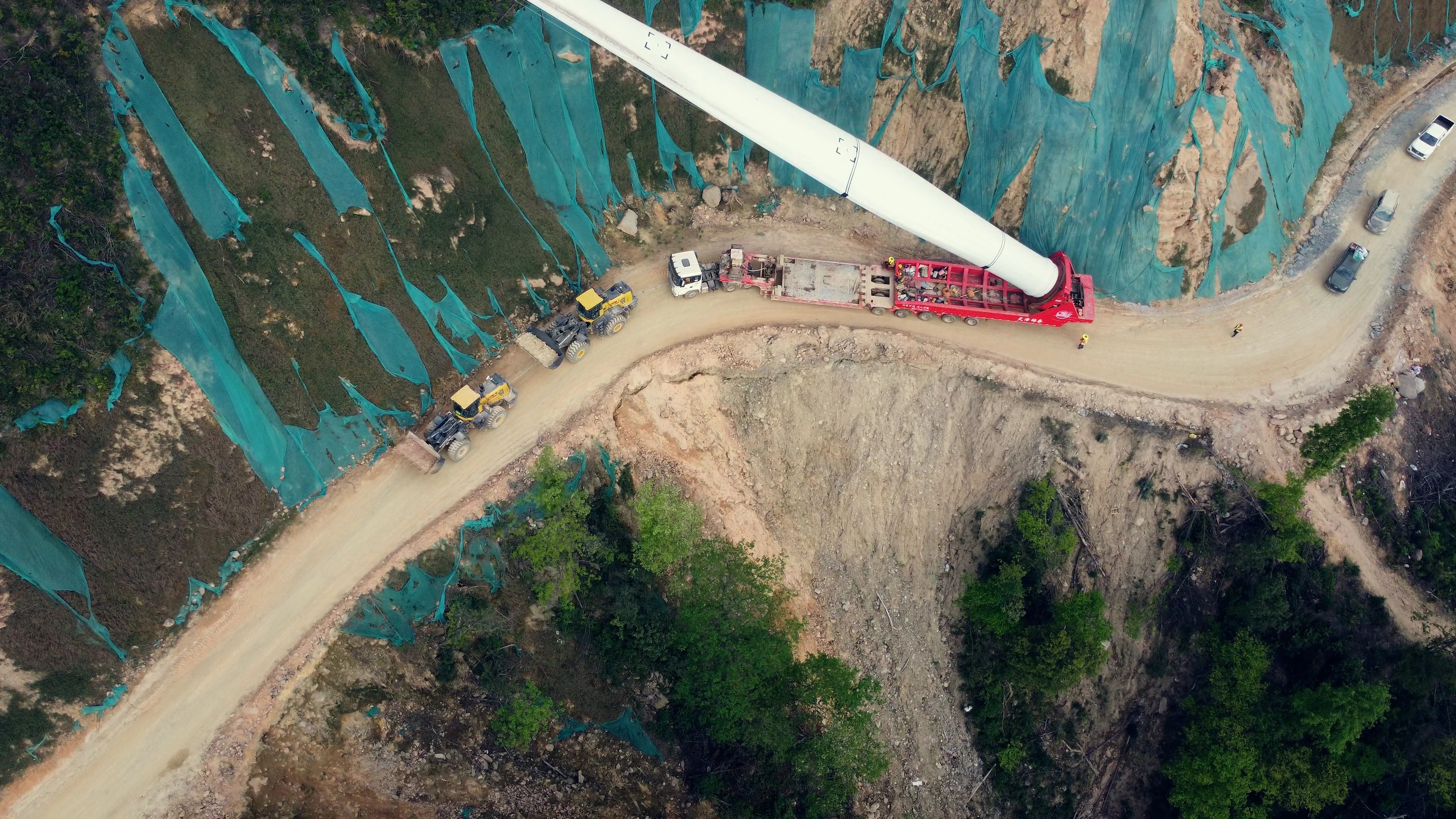 在廣西壯麗而險峻的喀斯特地貌褶皺深處,一場工業(yè)文明與自然之力的深度對話正拉開帷幕。核心任務是將單片重逾20噸、整車載重高達180余噸的風機大件,沿總長60多公里、最大坡度超過20度的崎嶇山路運送至山頂。如此惡劣的工況,對設備的動力性、穩(wěn)定性與承載能力提出了近乎極限的考驗。