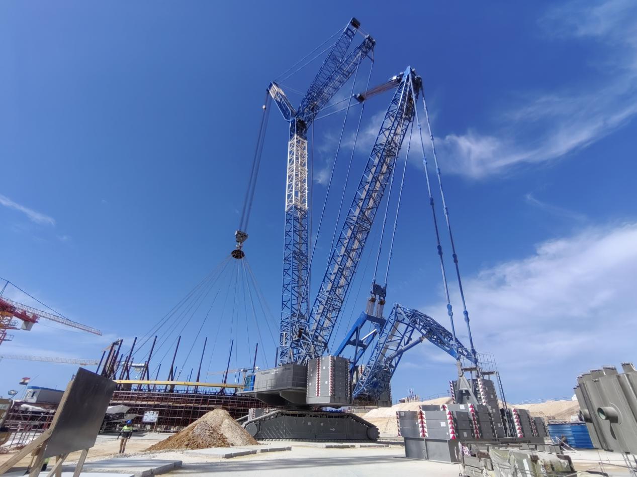 在地中海畔的埃及達巴鎮(zhèn),四臺VVER-1200型核電機組正拔地而起。當首臺機組在2022年7月啟動主體工程,到2024年1月四臺機組全面展開建設,這座總裝機容量4.8吉瓦的核電站承載著埃及能源轉(zhuǎn)型的雄心。而在重達數(shù)百噸的穹頂?shù)跹b、精密設備安裝等關鍵環(huán)節(jié),中聯(lián)重科ZCC32000超大型起重機正以鋼鐵之臂展現(xiàn)“中國智造”的超強實力。