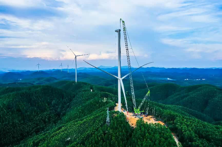 中聯(lián)重科ZCC9800W履帶式起重機(jī)正在進(jìn)行風(fēng)電吊裝