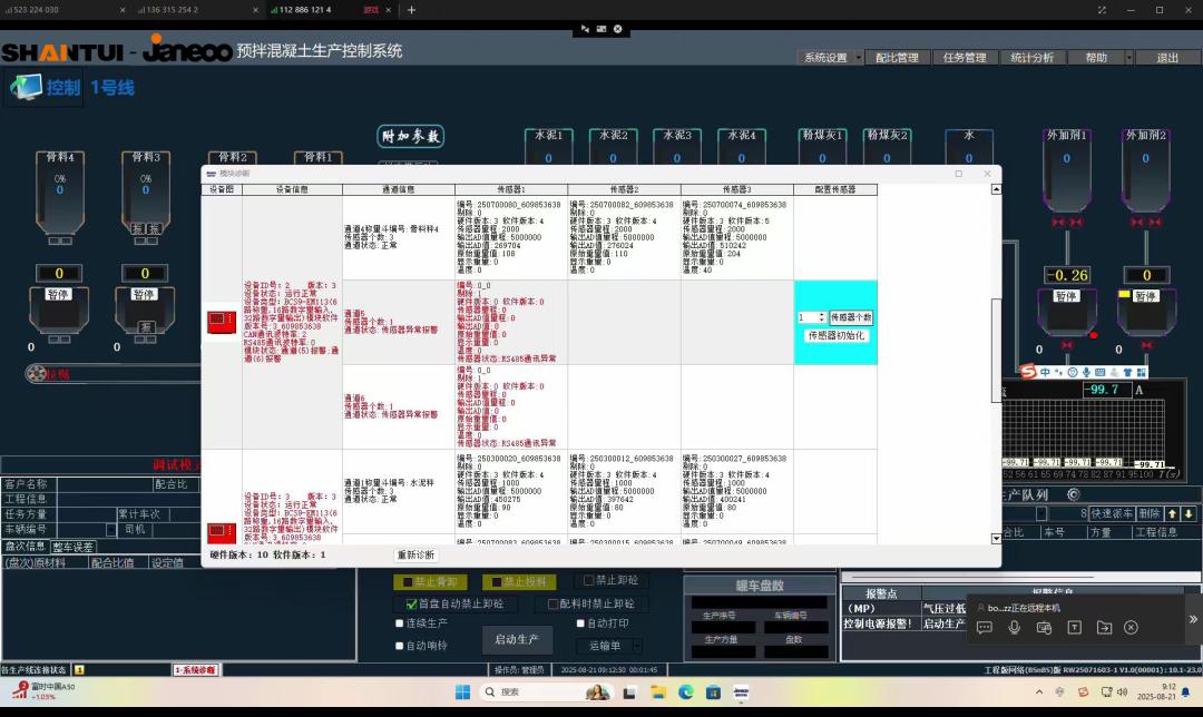 (2)故障自診斷,質(zhì)量更可靠。傳統(tǒng)模擬稱重傳感器若出現(xiàn)故障,往往難以快速檢測(cè),尤其是在多個(gè)傳感器并聯(lián)使用的計(jì)量秤中,故障排查需要耗費(fèi)大量人力與時(shí)間,極易因故障未及時(shí)處理導(dǎo)致混凝土配比偏差,導(dǎo)致混凝土出現(xiàn)質(zhì)量問(wèn)題,進(jìn)而影響工程質(zhì)量。山推數(shù)字傳感器控制系統(tǒng)搭載故障感知技術(shù),可實(shí)時(shí)檢測(cè)各個(gè)數(shù)字傳感器的工作狀態(tài),并迅速發(fā)現(xiàn)工作性能異常情況,發(fā)出報(bào)警,提醒操作員及時(shí)處置。這一功能從源頭避免了因設(shè)備故障引發(fā)的生產(chǎn)質(zhì)量問(wèn)題,為工地生產(chǎn)高品質(zhì)混凝土提供了堅(jiān)實(shí)保障。