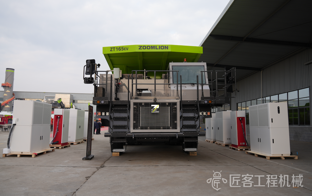 在產(chǎn)品方面,目前中聯(lián)重科已構(gòu)建起以60~200t級(jí)的“純電、混動(dòng)、拖電”新能源挖掘機(jī),35m3大型電鏟,80~100t級(jí)純電/混動(dòng)寬體自卸車,純電動(dòng)裝載機(jī),大馬力靜液壓推土機(jī)為核心的產(chǎn)品矩陣,可滿足不同規(guī)模、不同需求綠色礦山的低碳、零碳要求。同時(shí),開發(fā)的行業(yè)領(lǐng)先的兆瓦級(jí)超充方案、“大型充電寶”移動(dòng)補(bǔ)能方案,有效解決了礦區(qū)電力基礎(chǔ)設(shè)施受限的痛點(diǎn),提高了能源利用效率,減少了因能源供應(yīng)問題導(dǎo)致的設(shè)備停機(jī)時(shí)間,有效降低了能耗成本。