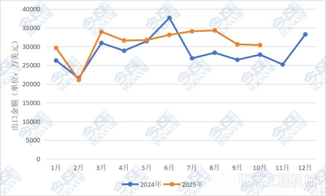 2025年1—10月中國工程機械產(chǎn)品進出口情況分析