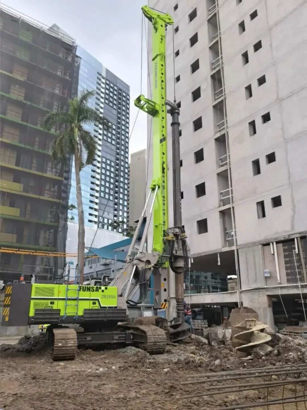 ZR255H旋挖鉆機首次投入巴拿馬城房建樁基礎施工,就展現(xiàn)出強勁的施工能力,高效完成直徑1.2米、深度25米的樁孔作業(yè)。項目地質(zhì)以黏土為主,底部為強度約50兆帕的泥巖層,ZR255H憑借“軟硬兼施”的適應性,通過高效液壓系統(tǒng)兼顧施工速度與油耗控制,配合多檔位動力頭設計,輕松攻克強風化巖層,僅用3小時就完成單孔鉆進,效率令當?shù)貓F隊驚嘆不已。項目方負責人不僅認可中聯(lián)重科產(chǎn)品,也高度肯定了公司的全程服務保障體系。