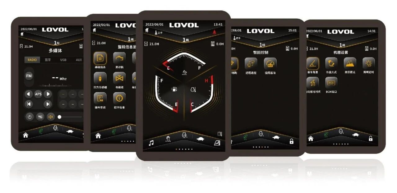 全新開發(fā)的雷沃智能操作系統(tǒng),可實現(xiàn)動力系統(tǒng)管理,智能交互,工況自動識別,輔助操作,個性定制等功能。