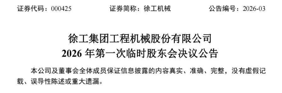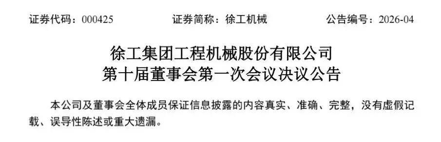 1月15日,徐工集團(tuán)工程機(jī)械股份有限公司(以下簡稱“公司”)召開2026年第一次臨時(shí)股東會(huì)及第十屆董事會(huì)第一次會(huì)議,順利完成董事會(huì)換屆選舉與高級管理人員聘任工作。