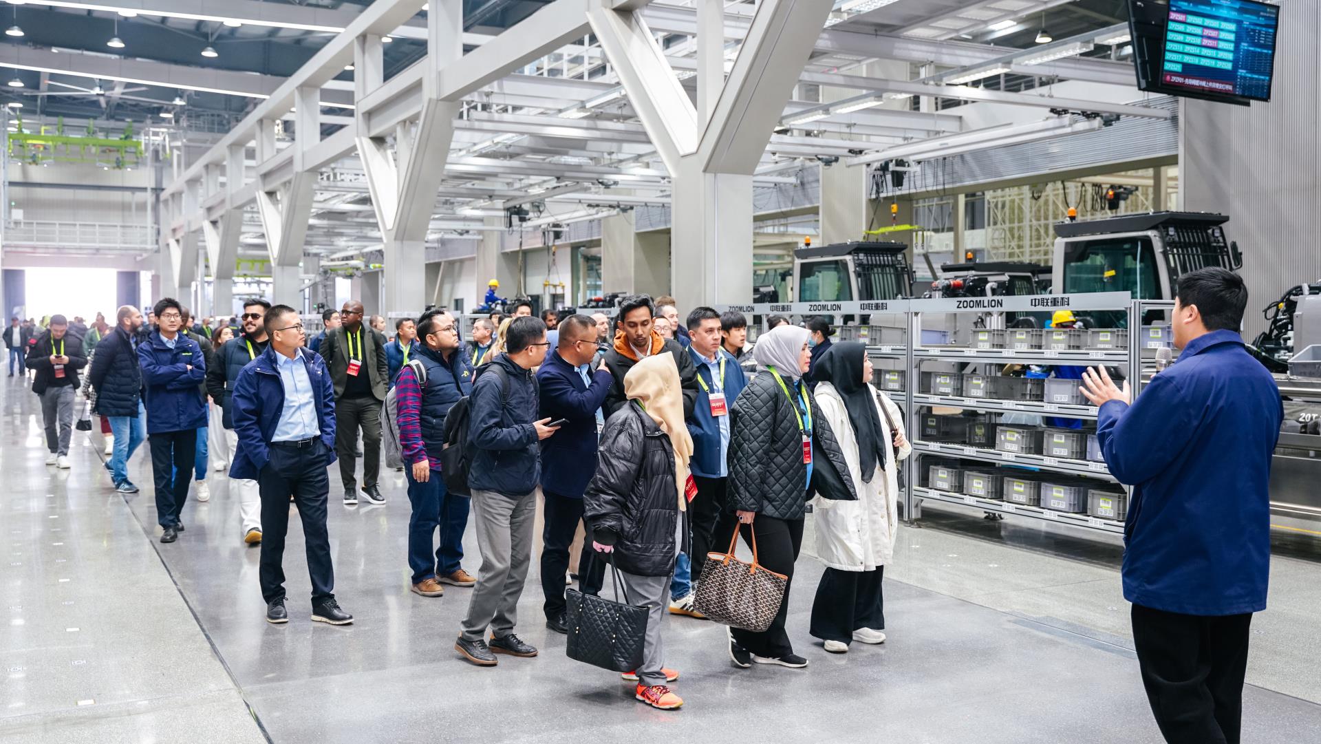 期間,海外客戶參觀了中聯(lián)智慧產(chǎn)業(yè)城土方機械園、高空機械園、起重機械園和混凝土泵送機械園等四大全球領(lǐng)先的智造園區(qū),觀摩了緊湊型設(shè)備聯(lián)合施工、綠色無人裝備演示。近距離親身感受,讓活動嘉賓對中聯(lián)重科引領(lǐng)行業(yè)的智造成果和智能化、綠色化水平贊嘆不已。