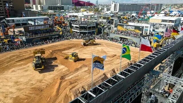 卡特彼勒將像運營經(jīng)銷網(wǎng)絡(luò)那樣“運營”CONEXPO:規(guī)模大、層次多、覆蓋各種作業(yè)類型。Festival Grounds 的主展區(qū)將設(shè)有“操作手體育場(Operator Stadium)”與“全球操作手挑戰(zhàn)賽(Global Operator Challenge)”決賽,吸引大量人流,同時也能展示真實操作技能與真實設(shè)備作業(yè)。卡特還會按重點拆分其展會布局:West Hall 的展位聚焦緊湊型設(shè)備;South Hall 的展位則展示Cat工業(yè)動力系統(tǒng)發(fā)動機。技術(shù)將主導討論:卡特計劃重點展示 VisionLink(車隊管理、生產(chǎn)力與安全),并展示Cat Command 產(chǎn)品組合(遠程控制、半自動與全自動)。Cat Detect Collision Mitigation(碰撞緩解)會有演示與上手體驗。設(shè)備方面,卡特在戶外展示30 多臺機器,包括Cat 319 小型液壓挖掘機。公司還預覽未來平地機設(shè)計(包括手柄/搖桿控制選項),以及一款高驅(qū)動電傳動中型推土機概念機。