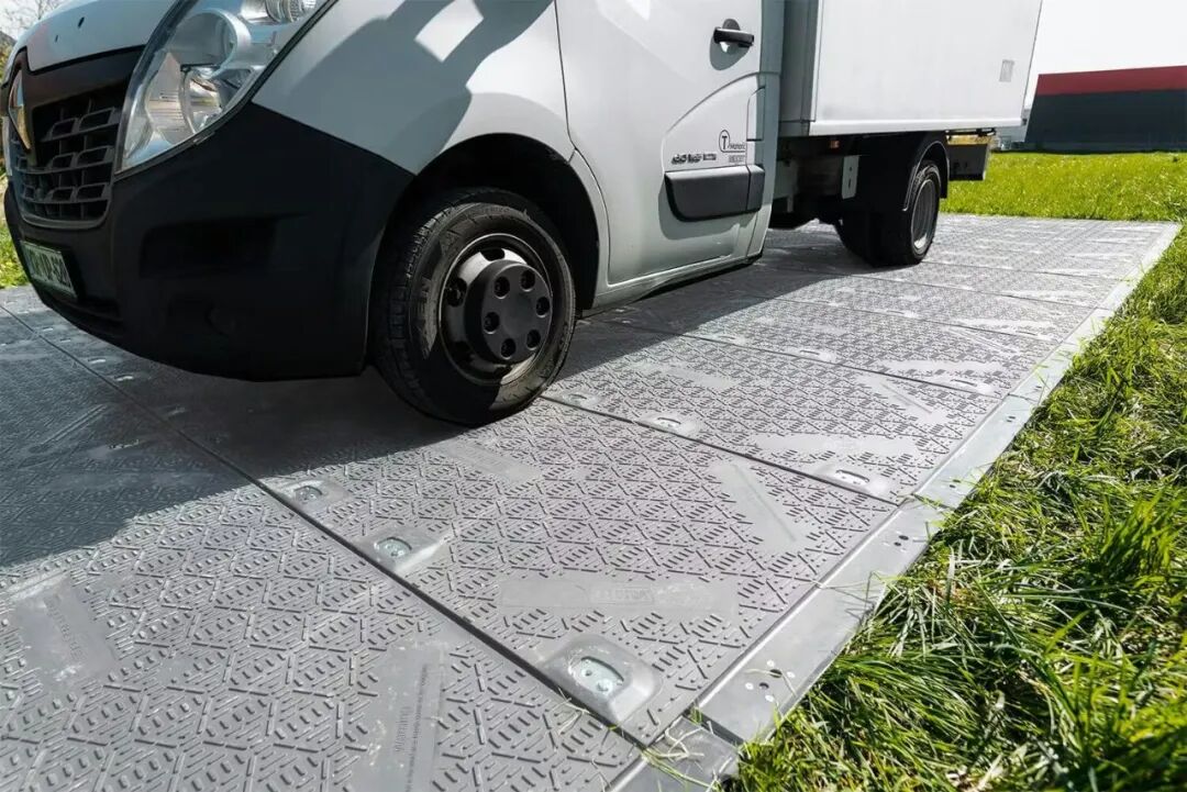 DICA 以支腿墊(outrigger pads)起家,現(xiàn)在把業(yè)務(wù)擴展到整個工地地面保護。公司推出全系列工程化地面保護產(chǎn)品:Ranger HD、Defender MD 與Titan墊板系統(tǒng)。策略很直接:讓墊板與負載、土質(zhì)、使用周期精準匹配。Ranger HD面向臨時鋪設(shè),每塊2.41×1.20m,重80 磅,可人工搬運;加長的連接槽可應(yīng)對熱脹冷縮,解決長距離鋪設(shè)的現(xiàn)實難題。Defender MD面向更重設(shè)備,重疊邊緣把負載分散并形成統(tǒng)一平臺,兩人即可快速鋪設(shè)約40.82kg的墊板。Titan墊板用于重型設(shè)備:尺寸約2m×4.06m,0.0381m核心厚度,適配起重機、泵車與長期通行道路;集成吊點可加快鋪設(shè)。