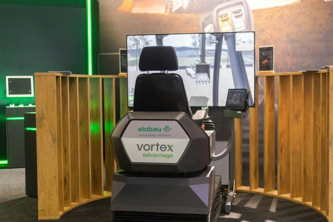 elobau把“可以親手感受的硬件”帶到展位:新Robust Joystick JE將搭載在與 CM Labs合作的實時模擬器中,你可以操作虛擬挖掘機,實時體驗存在檢測、觸覺反饋與可配置輸入。這對OEM與車隊管理者都很關(guān)鍵:人機工程與功能安全不再是“軟特性”,而會影響疲勞、精度與培訓曲線。該搖桿面向嚴苛非道路環(huán)境,模擬器展示的是“負載下的表現(xiàn)”,而不是靜態(tài)展臺效果。