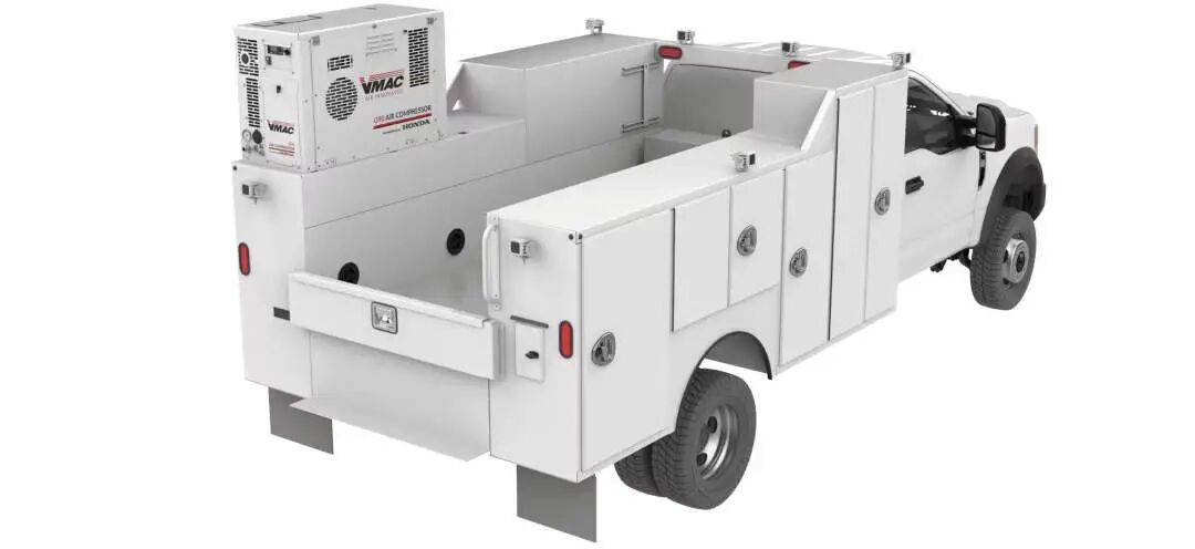 VMAC面向服務(wù)車用戶與不想拖“額外拖車設(shè)備”的客戶群體。展位會展示新的移動供氣與供電系統(tǒng),試圖替代“一拖車備用設(shè)備”。重點產(chǎn)品:G90(FlexDrive AMS),VMAC表示其可持續(xù)輸出90 cfm(100 psi),并可在170 psi下持續(xù)輸出至50 cfm。另一個亮點是由本田驅(qū)動的燃氣6合1多功能動力系統(tǒng),包含:壓縮空氣、發(fā)電、焊接、12V/24V 充電、啟動助推與液壓動力。對車隊而言,這是關(guān)于載荷、空間與標準化的討論。電動化也有:e30與Stealth Power 的電池電動螺桿空壓機,額定30 cfm,適合室內(nèi)、夜間與受監(jiān)管工地。