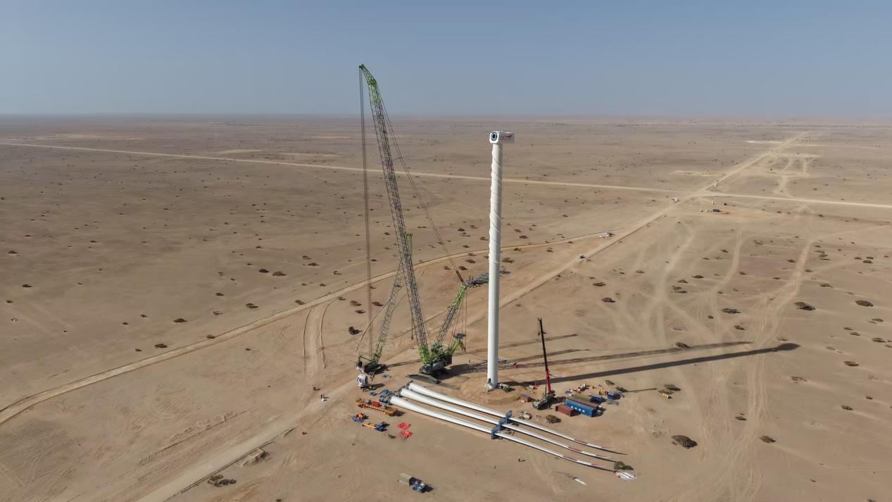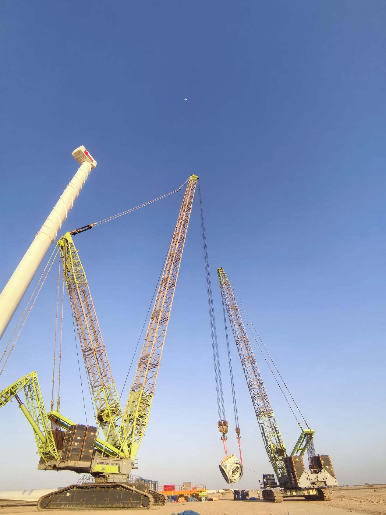 現(xiàn)場(chǎng)相關(guān)項(xiàng)目負(fù)責(zé)人直言:“沙漠環(huán)境中安裝大型風(fēng)電機(jī)組挑戰(zhàn)重重,中聯(lián)重科設(shè)備確保了整個(gè)安裝過程的安全高效,是項(xiàng)目順利推進(jìn)的重要保障。”