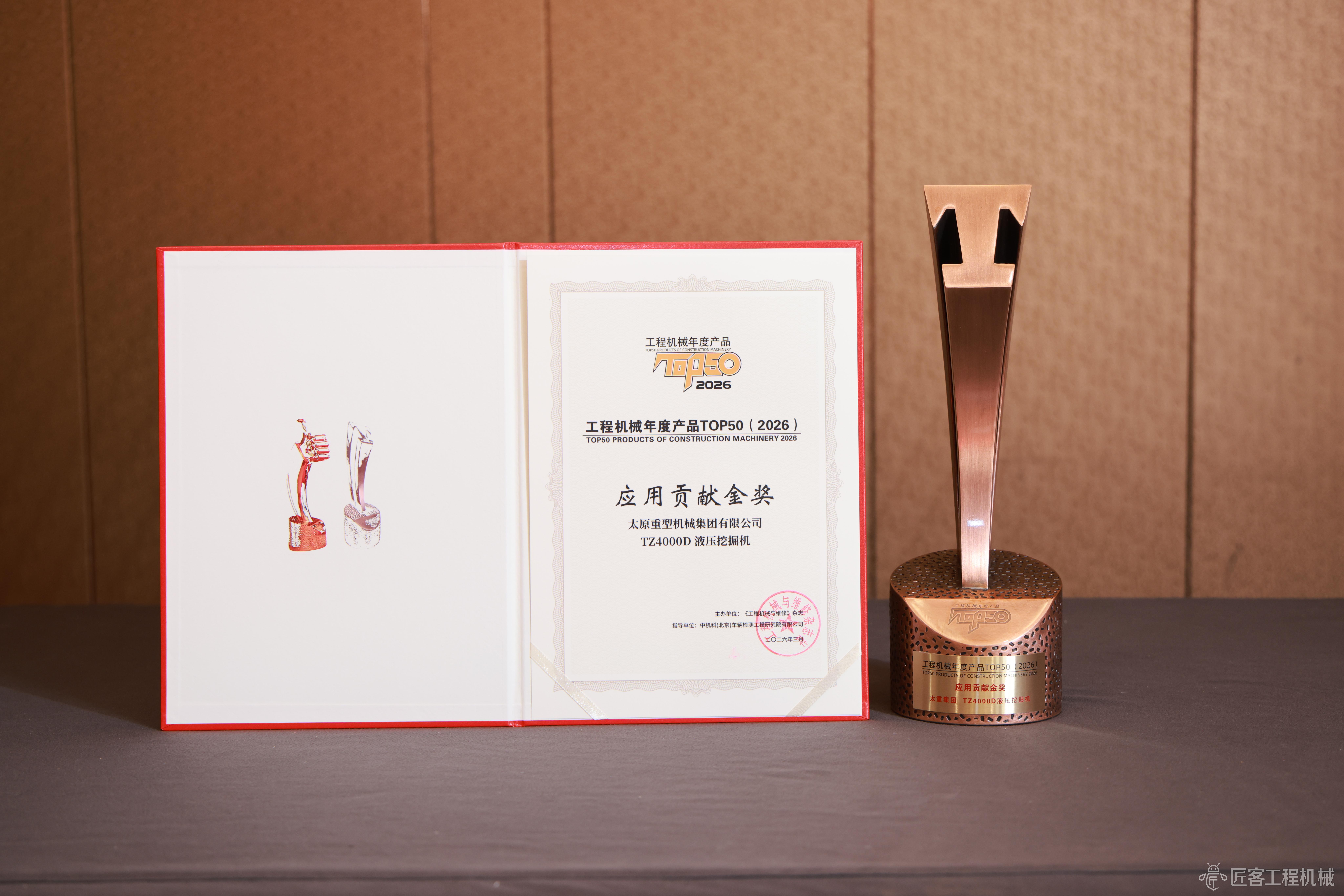 2026CM TOP50丨太重TZ4000D液壓挖掘機(jī)榮獲2026工程機(jī)械年度產(chǎn)品應(yīng)用貢獻(xiàn)金獎(jiǎng)