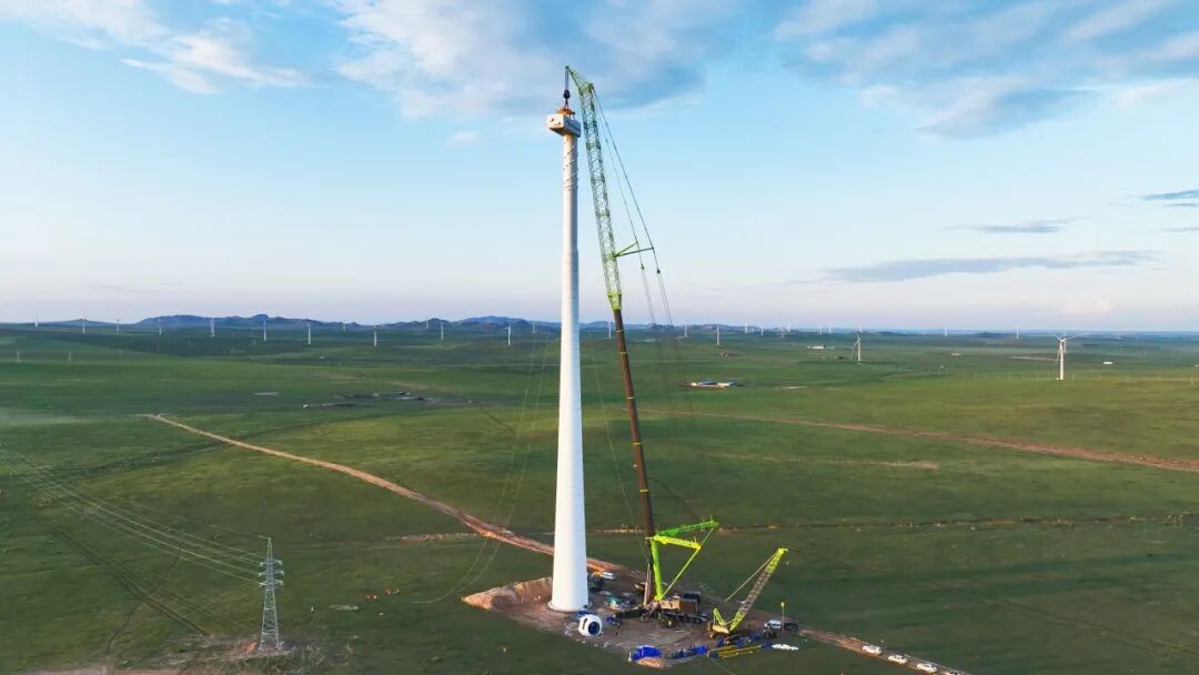 中聯(lián)重科全球最大4000噸全地面起重機(jī)正在進(jìn)行風(fēng)電吊裝