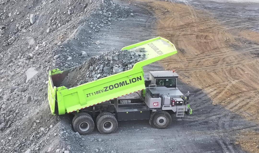 中聯(lián)重科純電動非公路寬體自卸車ZT118EV正在作業(yè)