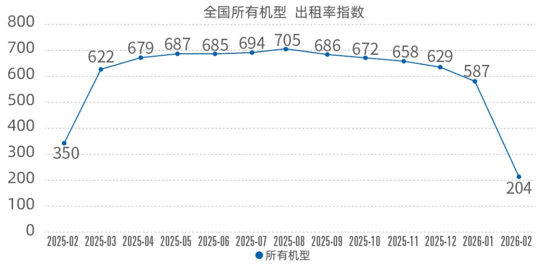 2026年2月升降工作平臺租賃行業出租率指數